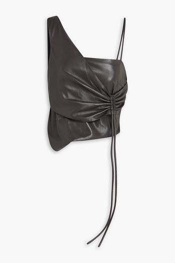 Tamie twist-front gathered cotton-blend sateen top