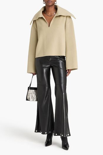 Double-breasted leather-trimmed wool-twill coat