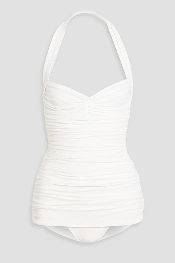 St. Kitts ruched cutout seersucker bandeau swimsuit