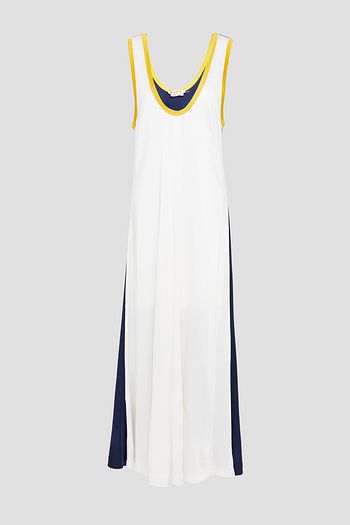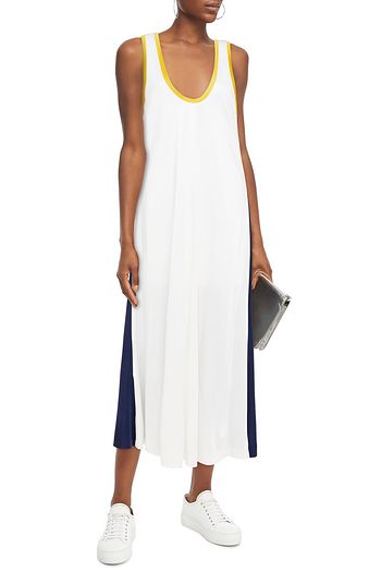 Off-the-shoulder broderie anglaise and silk-jacquard midi dress