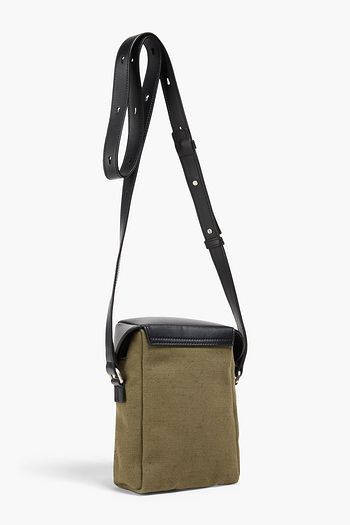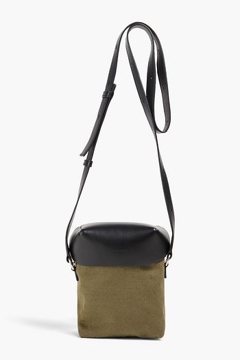 Leather-trimmed coated cotton-twill messenger bag