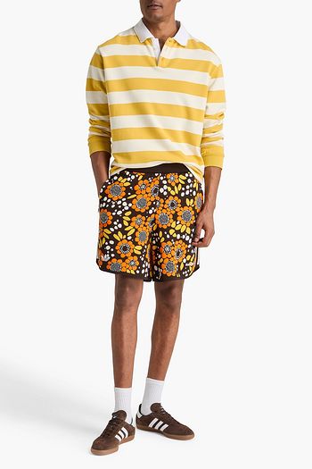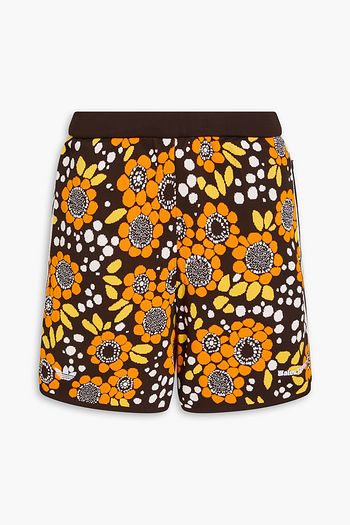 Printed mesh-paneled jersey shorts