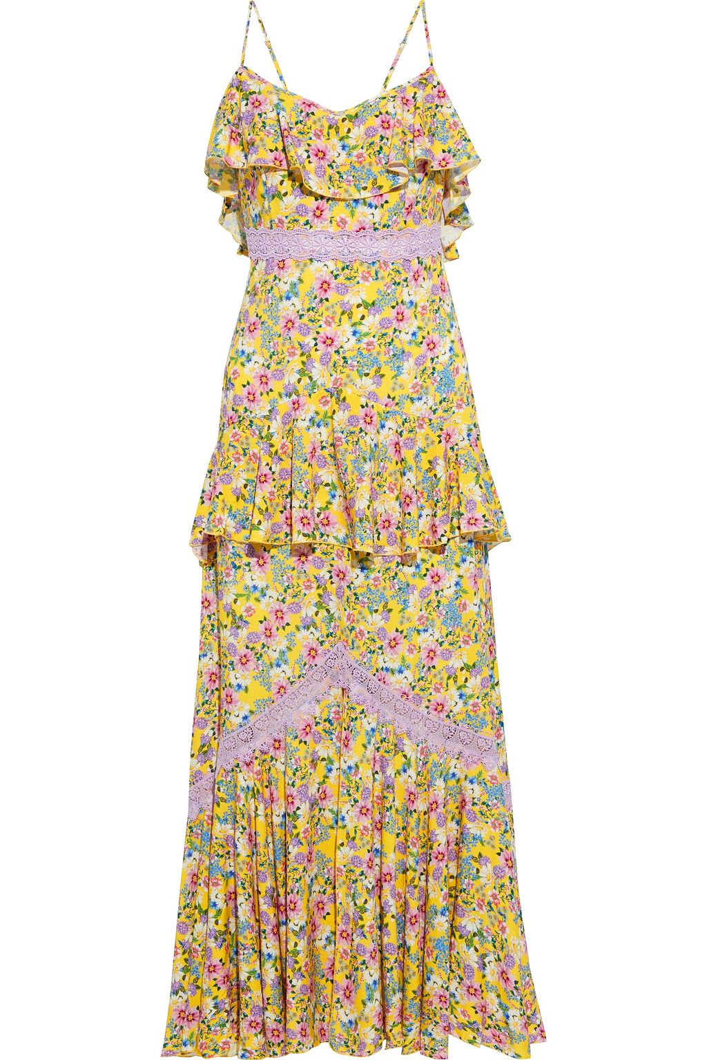 Amelia ruffled crocheted lace-trimmed floral-print voile maxi dress