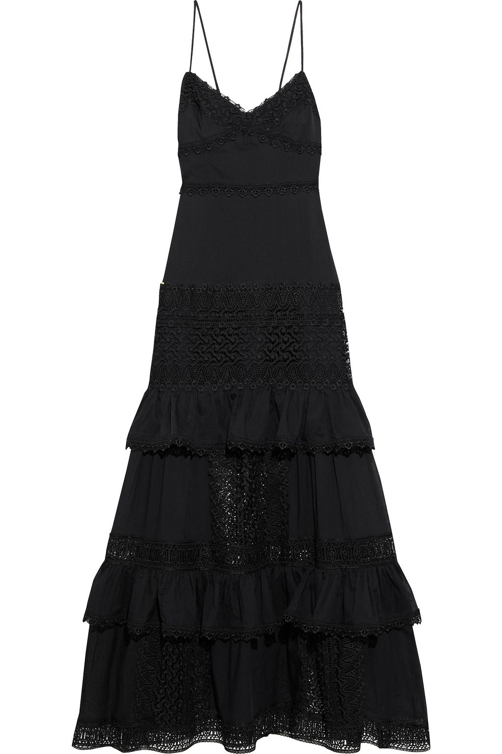 Amira tiered crocheted lace-paneled cotton-blend voile maxi dress