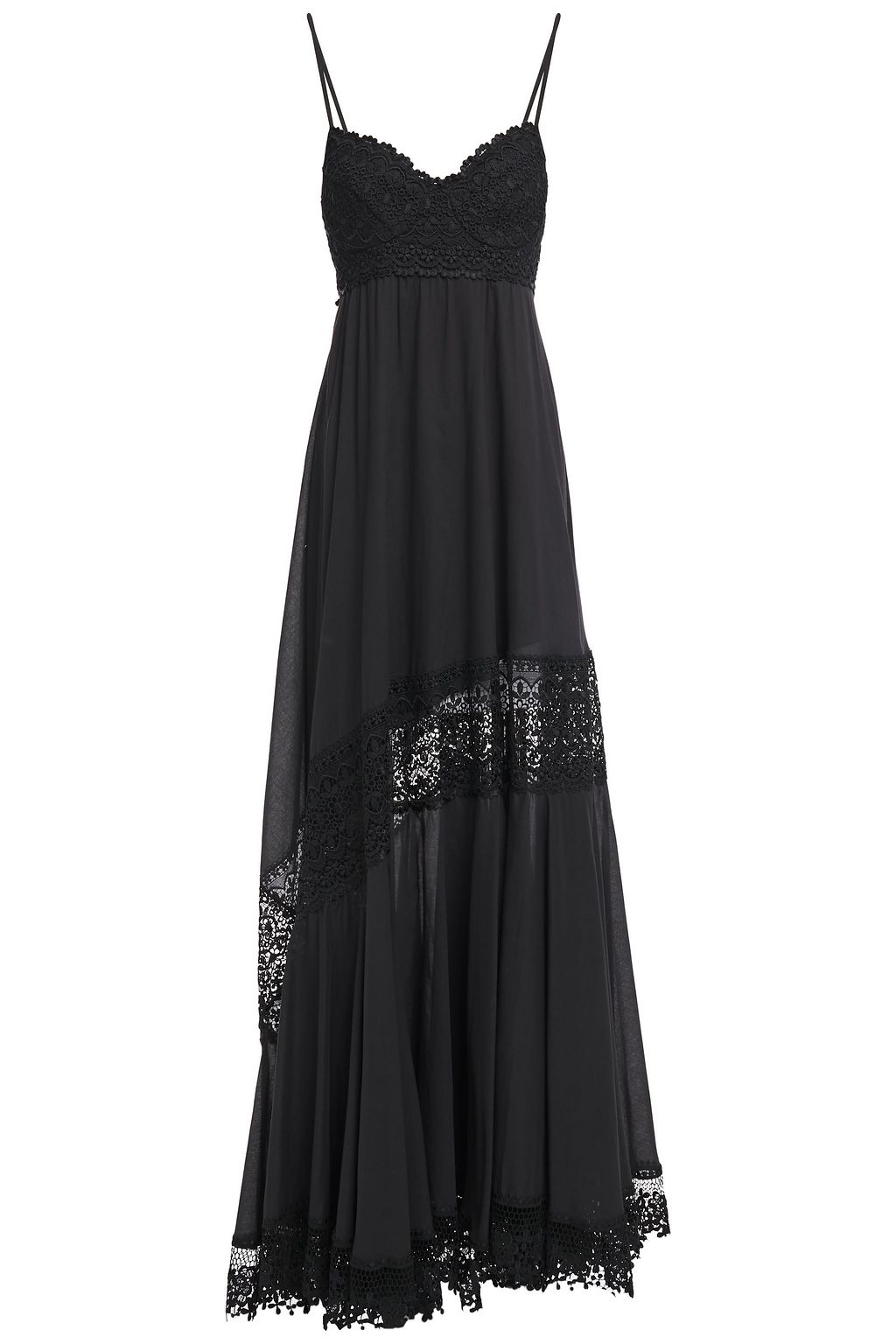 Guipure lace-paneled cotton-blend mousseline maxi dress