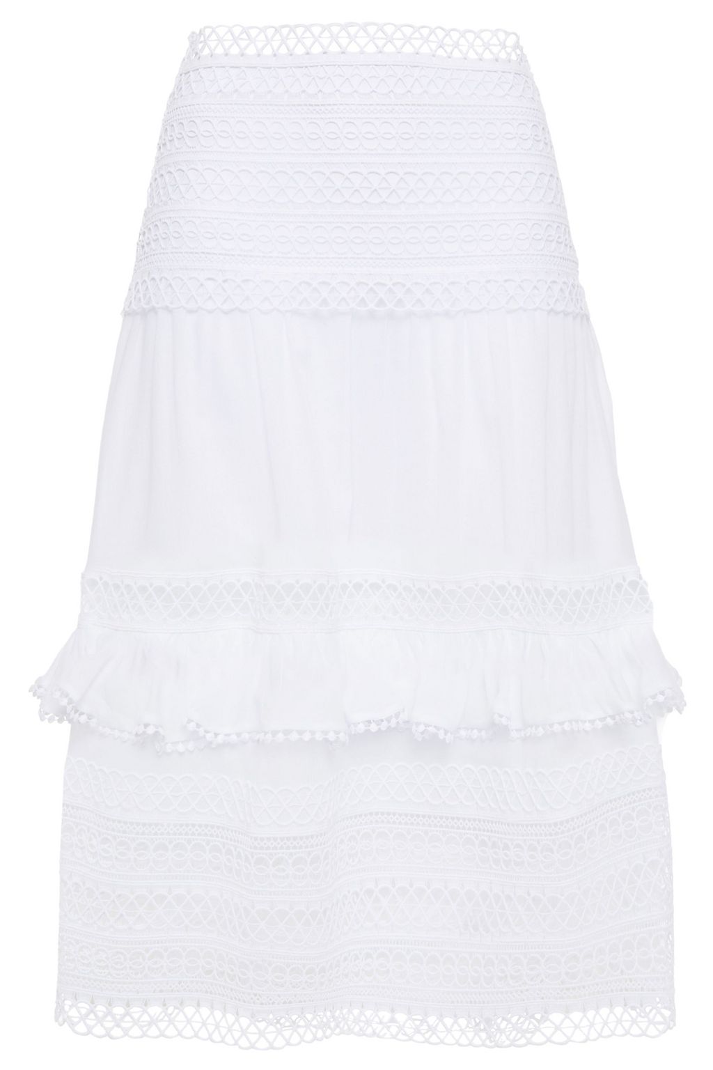 Gaita ruffle-trimmed crocheted lace and cotton-blend voile midi skirt