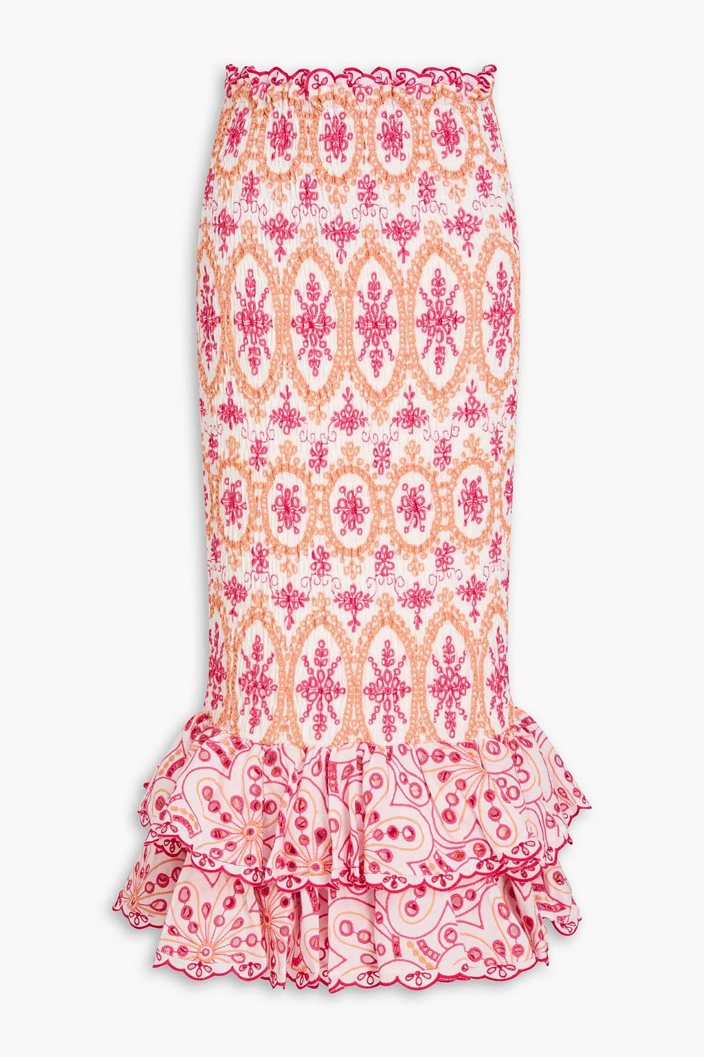 CHARO RUIZ IBIZA Liliana fluted printed broderie anglaise cotton-blend midi skirt