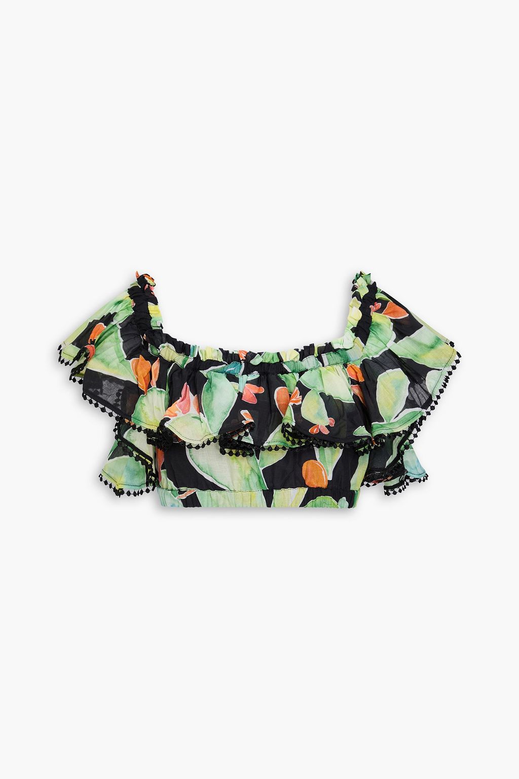 CHARO RUIZ IBIZA Girona off-the-shoulder cropped printed cotton-blend voile top