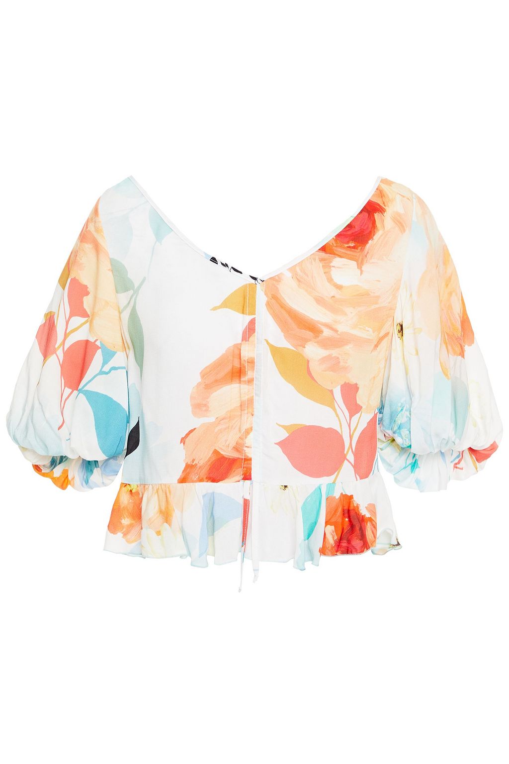 CHARO RUIZ IBIZA Cropped gathered printed woven top