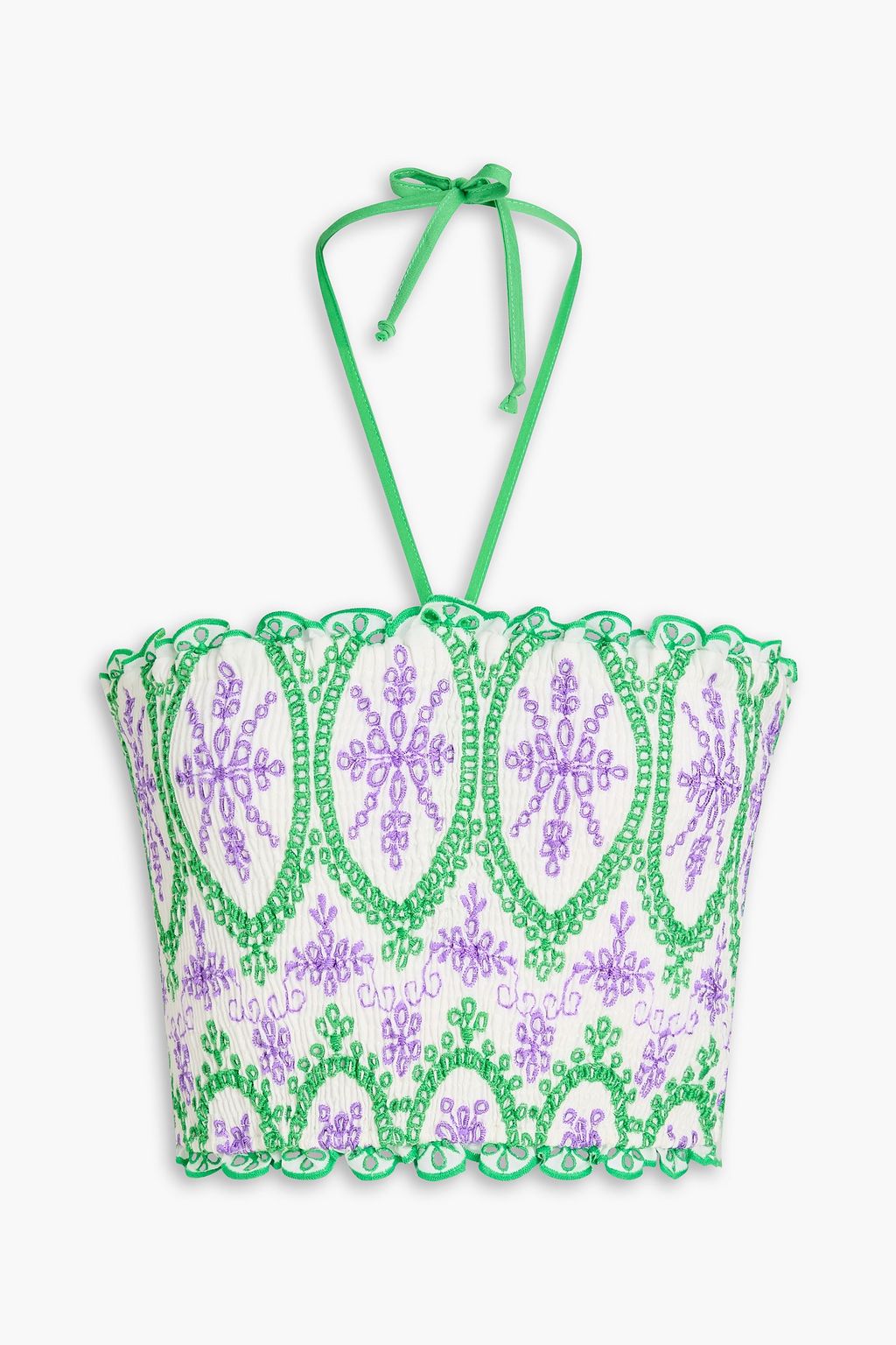 CHARO RUIZ IBIZA Areth cropped broderie anglaise cotton-blend halterneck top
