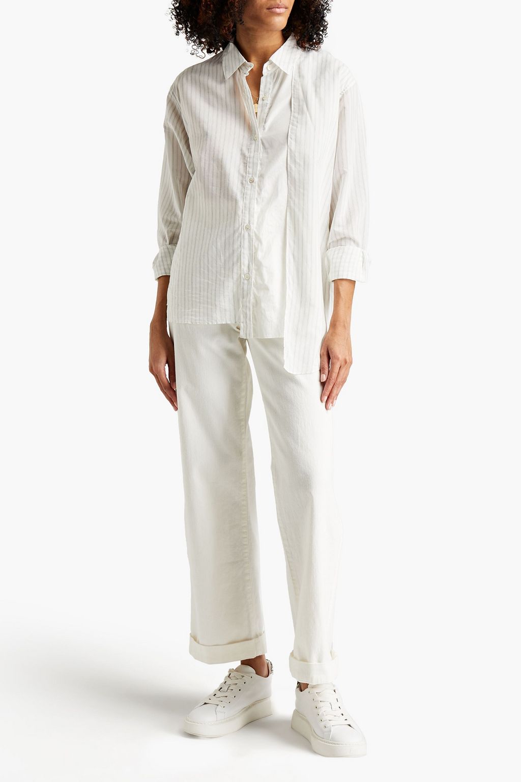Satin-paneled pinstriped cotton-blend poplin shirt