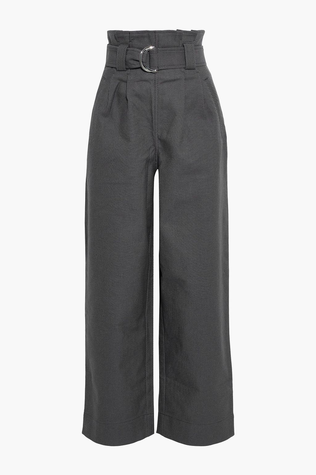 Belted pleated cotton-blend twill straight-leg pants