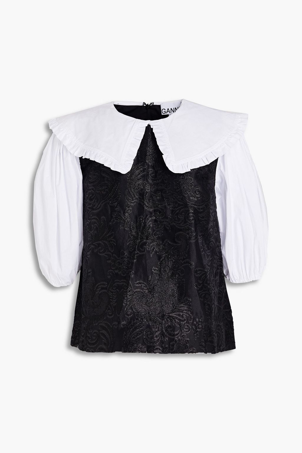 Poplin-paneled brocade blouse