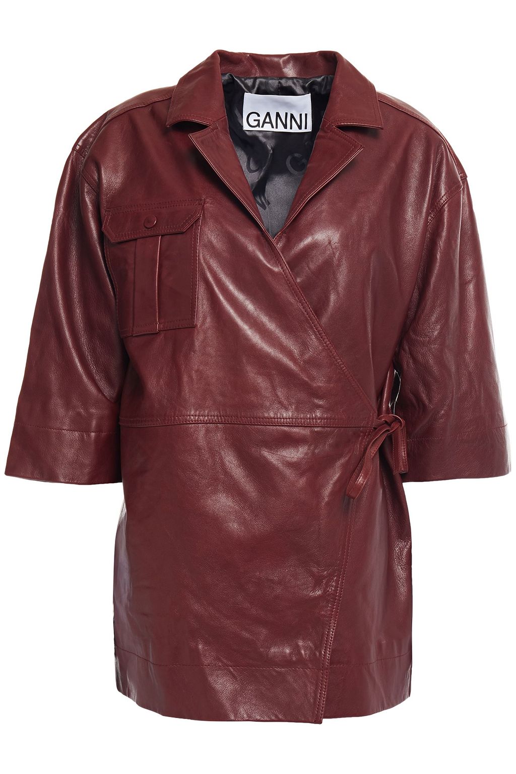 • GANNI Leather wrap top