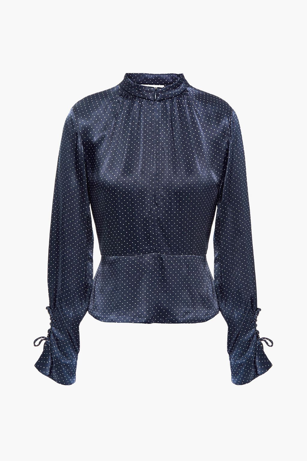 Tie-back cutout polka-dot satin peplum blouse