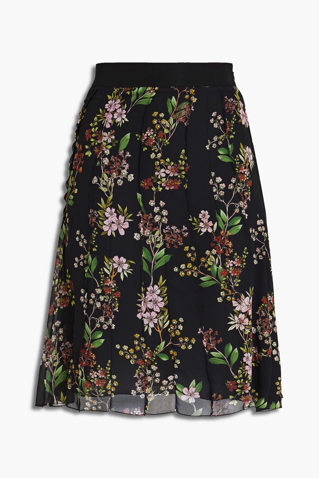 Pintucked floral-print silk-georgette skirt
