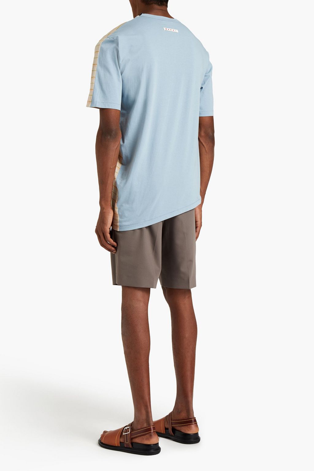 Logo-embroidered paneled striped cotton-jersey T-shirt