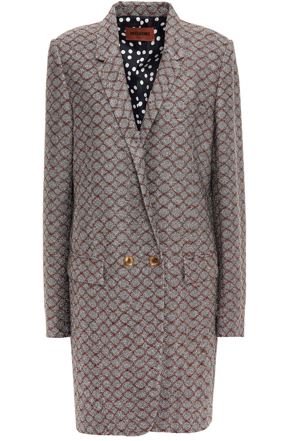 Double-breasted metallic jacquard-knit blazer