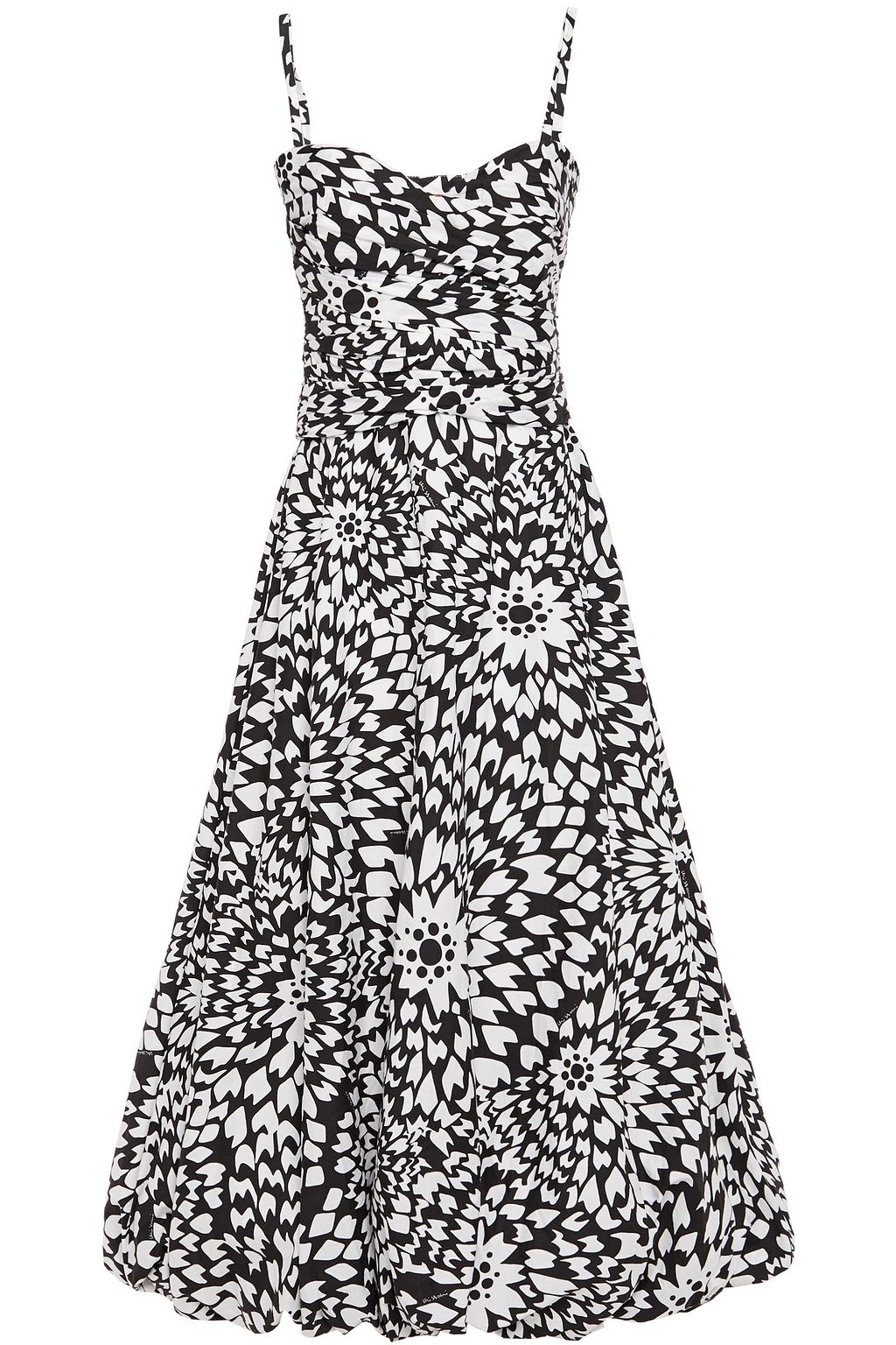 Flared ruched printed cotton-poplin midi dress