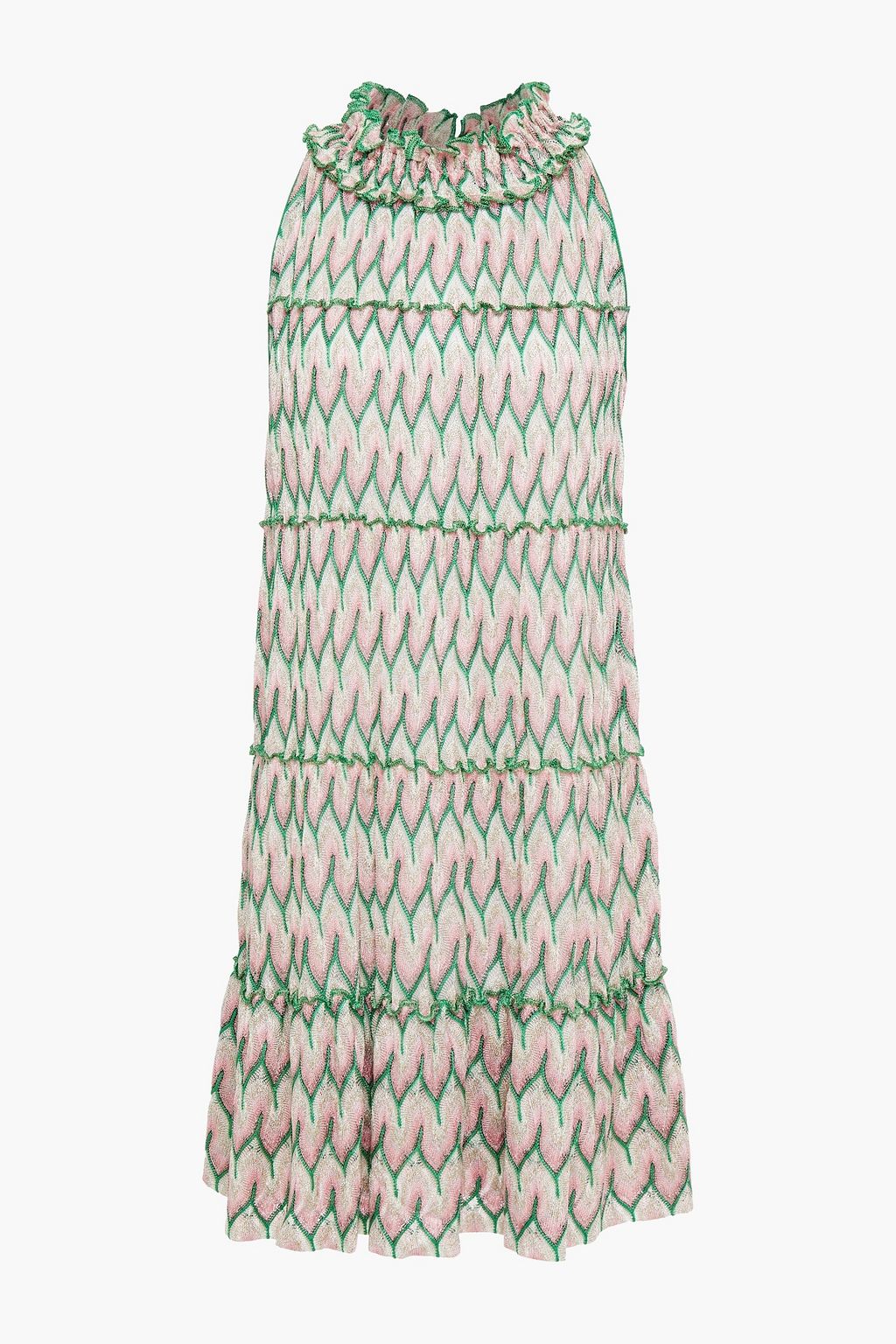 Ruffled metallic crochet-knit mini dress