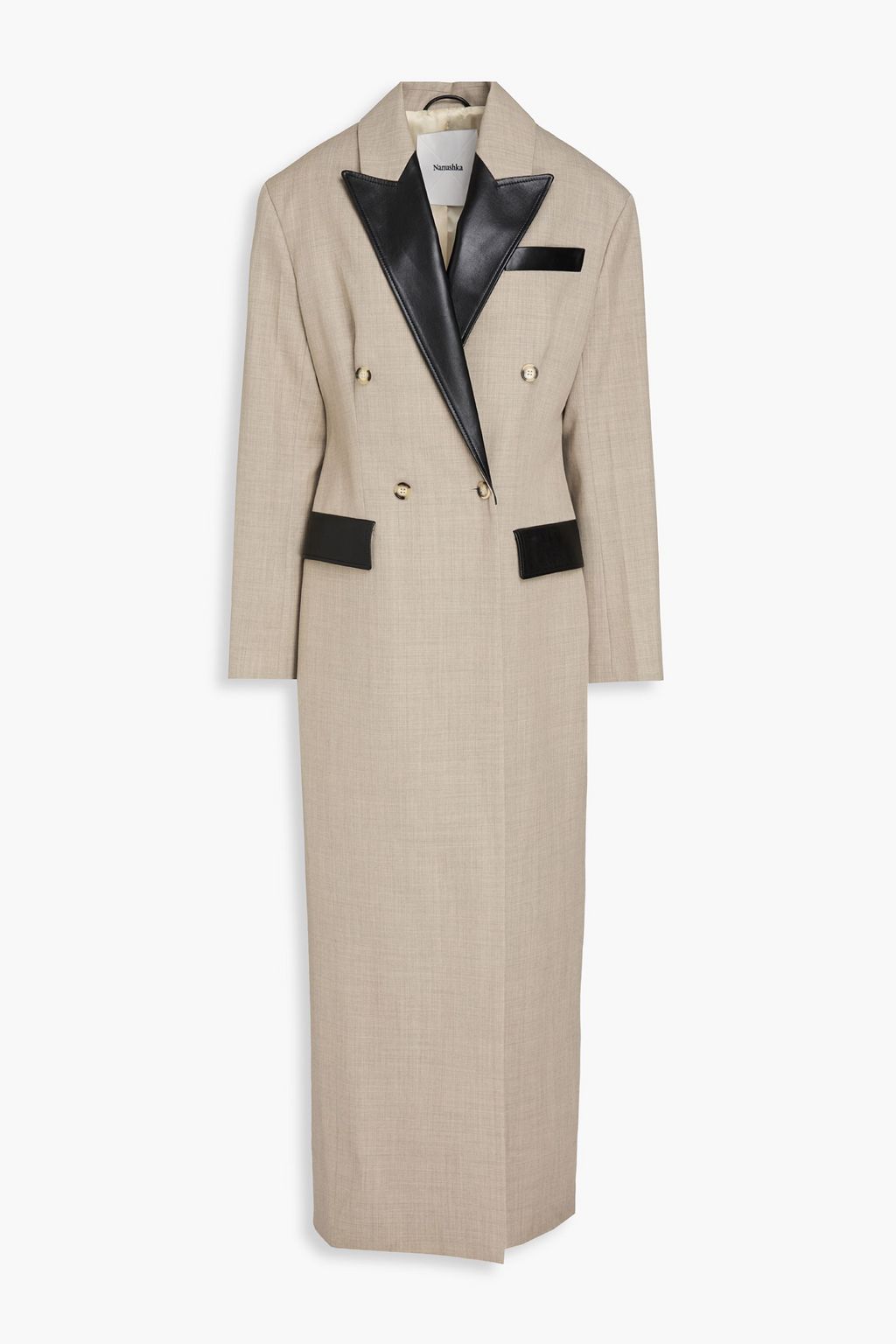 NANUSHKA Double-breasted leather-trimmed wool-twill coat