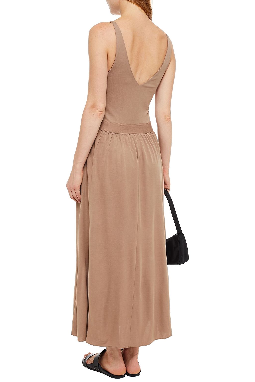 Gathered crepe de chine midi dress