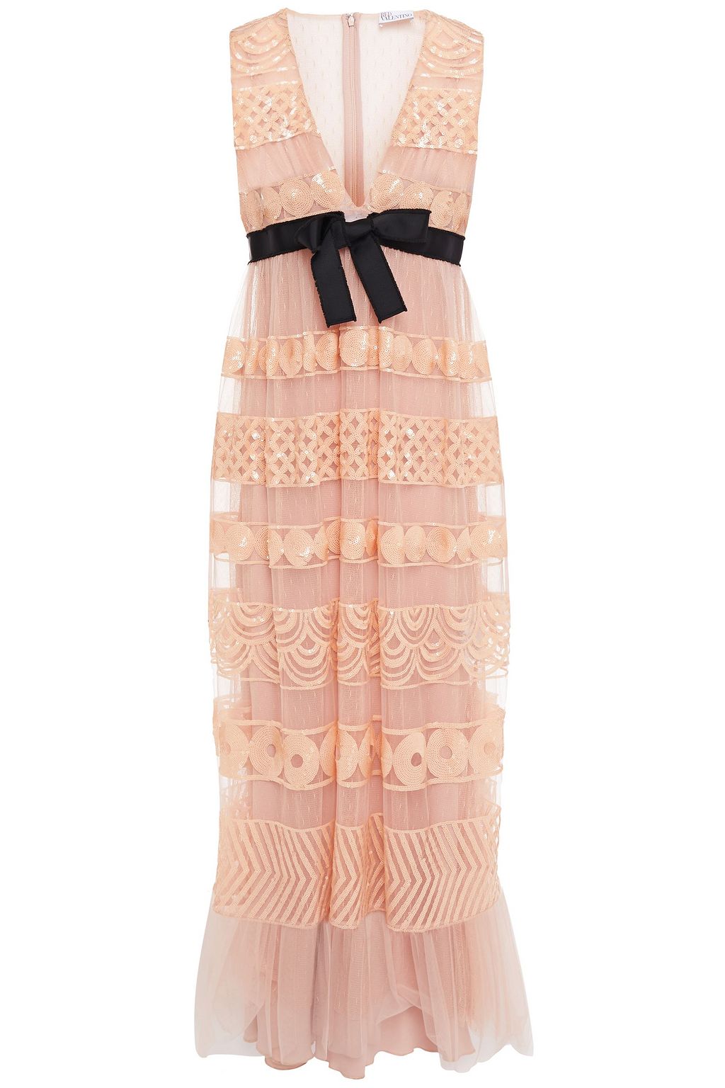 Grosgrain-trimmed sequined point d'esprit midi dress