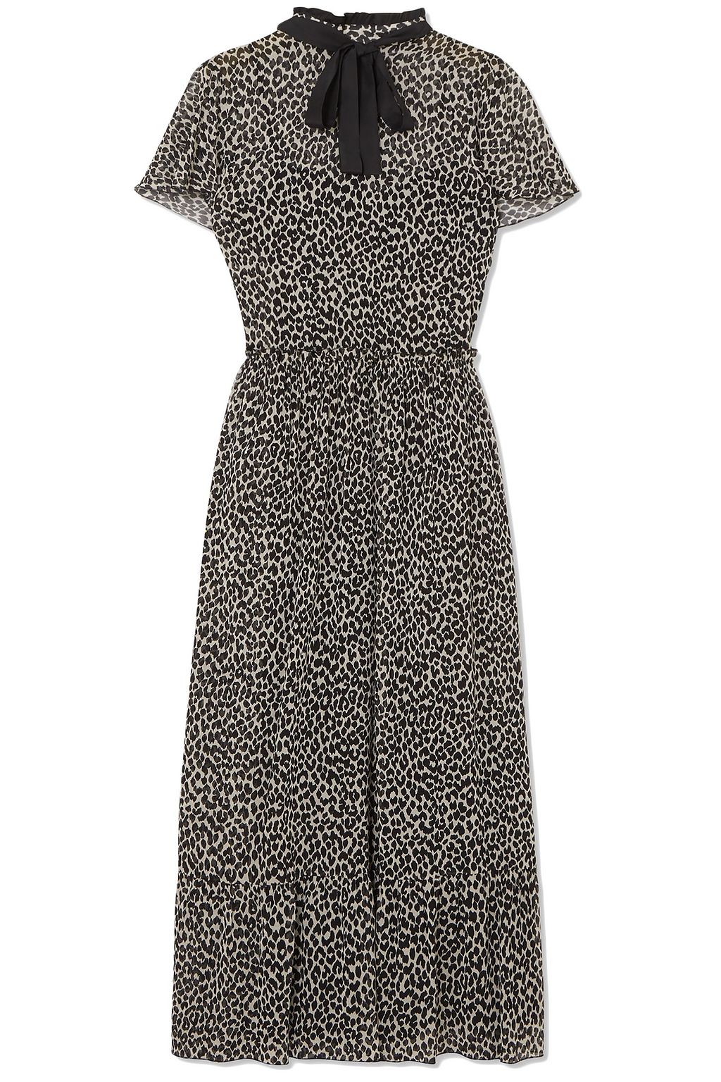 Pussy-bow leopard-print silk-blend chiffon midi dress