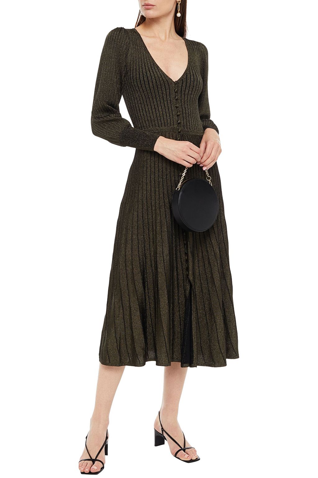 Aure metallic ribbed-knit midi dress