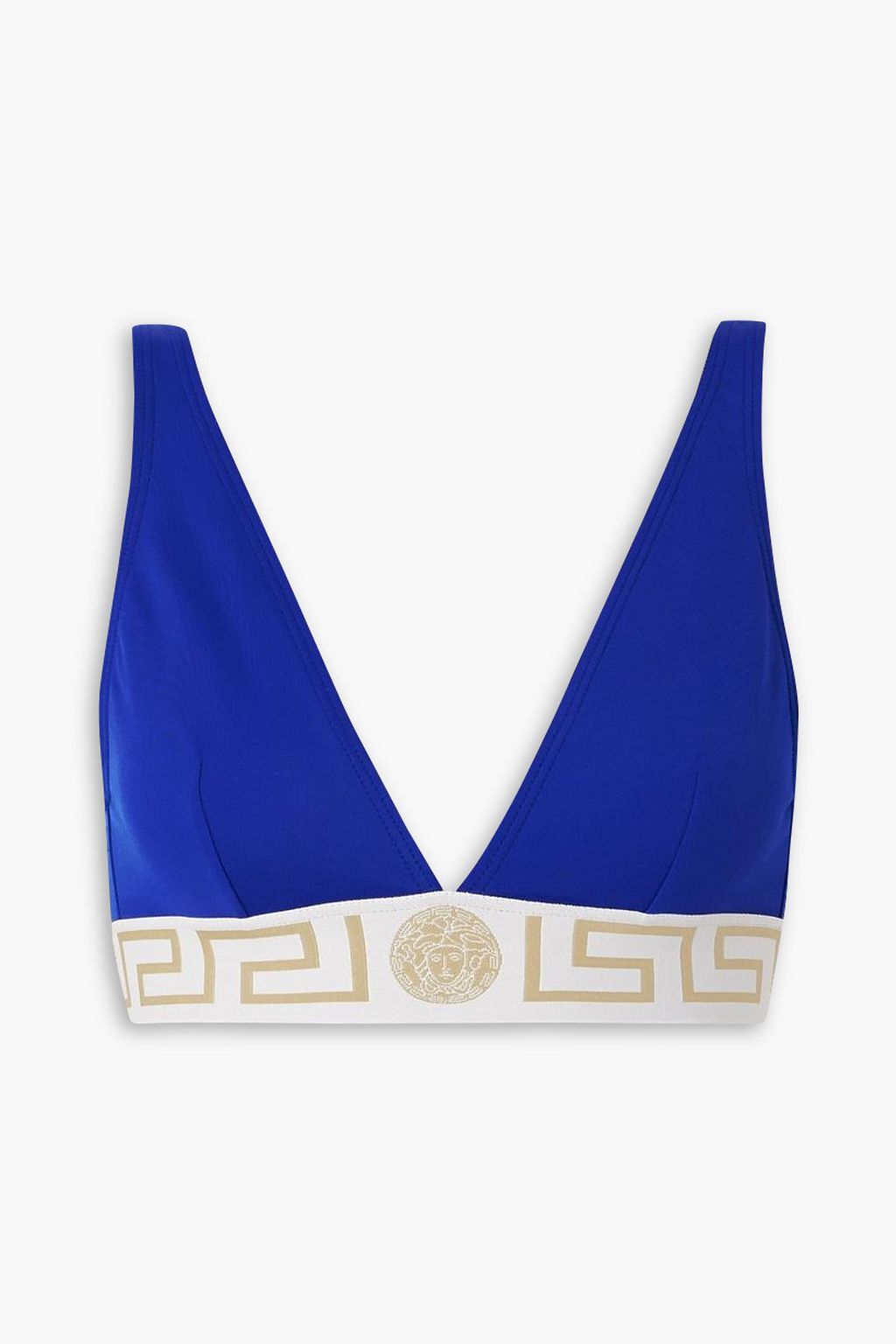 Versace's bikini top is instantly recognizable thanks to the signature 'Greca' motifs jacquard-woven along the underband. It's made from smoothing stretch fabric and has slim shoulder straps.