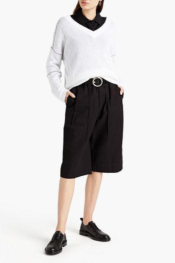 Asymmetric belted pleated cotton-poplin maxi skirt