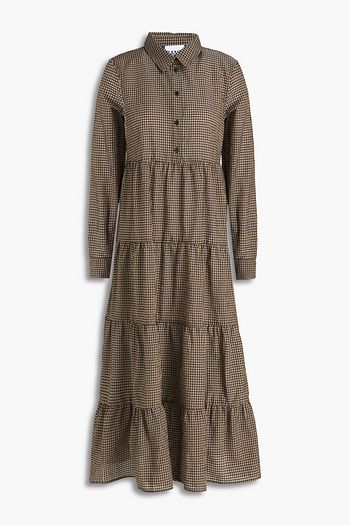Shirred gingham cotton and silk-blend maxi dress