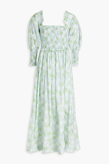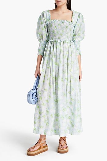 Shirred floral-print georgette midi dress