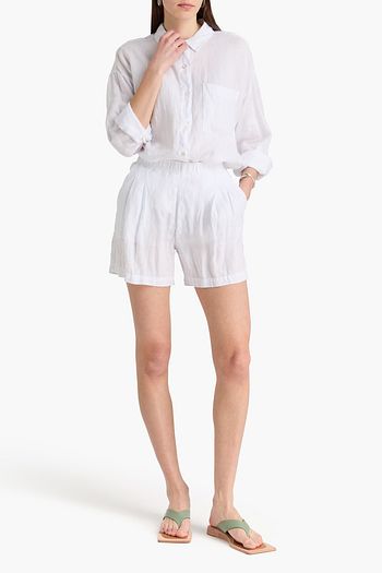 Pleated linen-blend shorts
