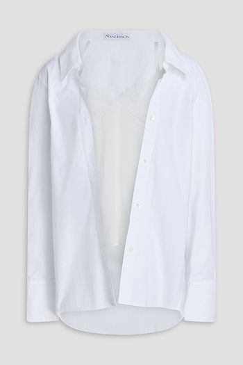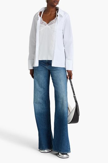 Belted twill-paneled Prince of Wales checked wool-blend blazer
