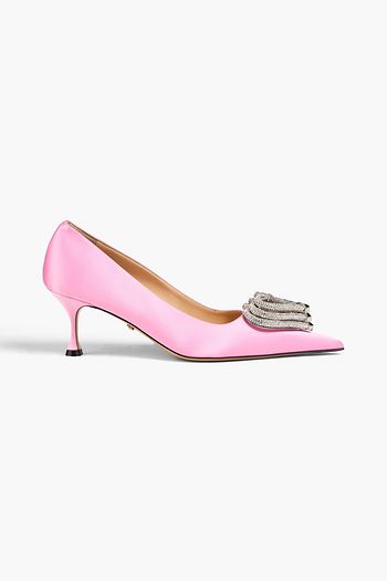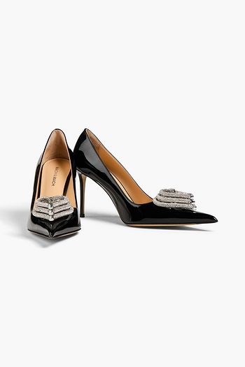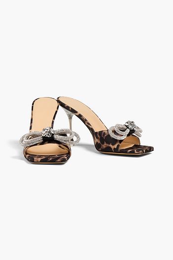 Double Bow crystal-embellished mirrored-leather and PVC mules
