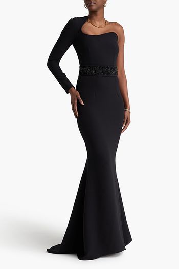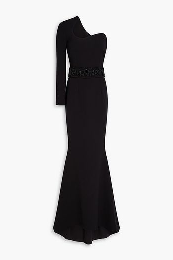 Bessy off-the-shoulder embellished stretch-crepe midi dress