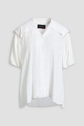 Bow-embellished cotton-poplin top