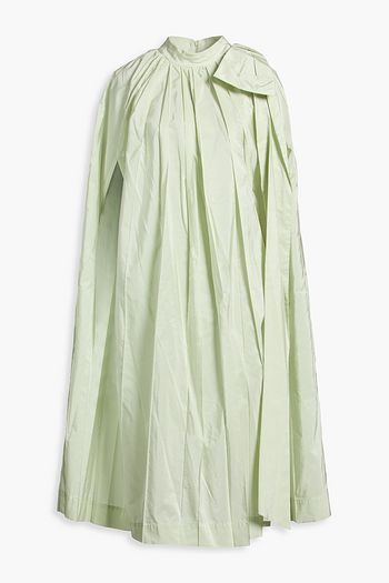 Ruffled pleated silk-satin midi shirt dress