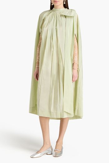Taffeta-paneled bow-embellished cotton-poplin trench coat