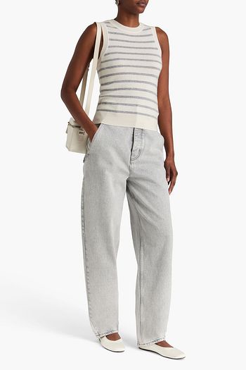 Nate button-embellished ribbed Pima cotton-blend jersey turtleneck top