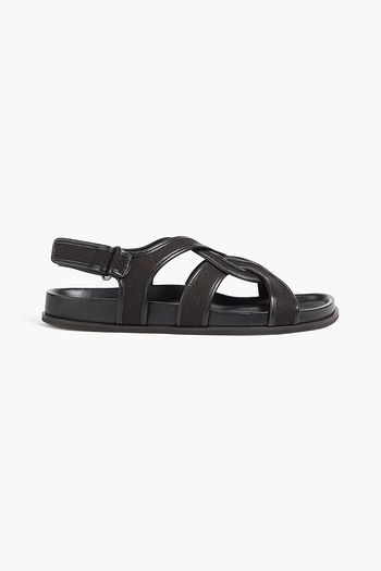 Leather-trimmed satin sandals