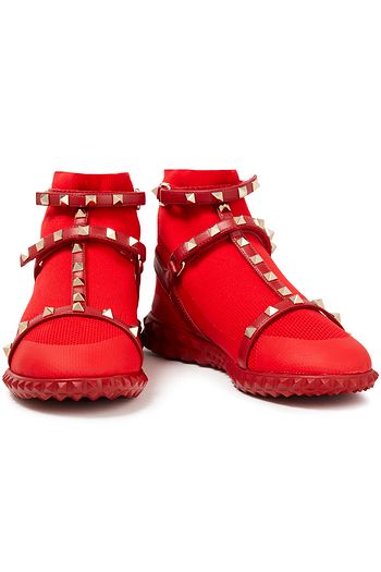 Cameron leather-trimmed jacquard-knit high-top sneakers