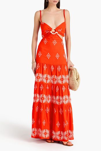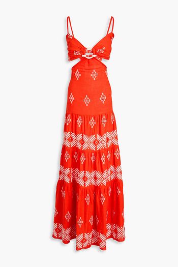 Yesenia bow-detailed tiered embroidered cotton-blend gauze midi dress