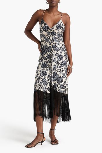 One-shoulder floral-print linen and silk-blend gauze midi dress