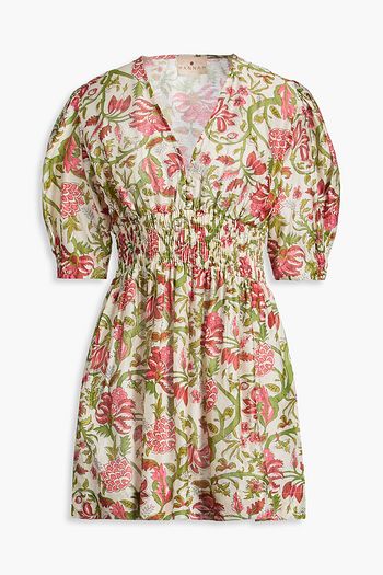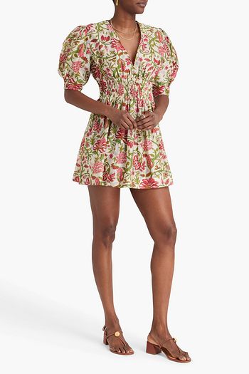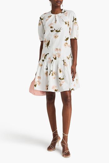 Ruffled floral-print stretch-cotton poplin mini shirt dress
