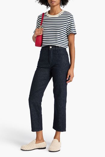 Cropped striped high-rise slim-leg jeans