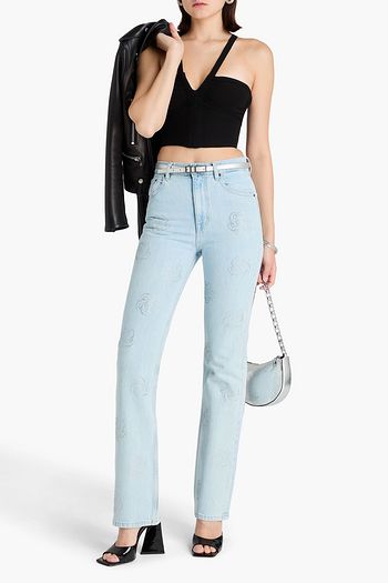 Embellished high-rise straight-leg jeans