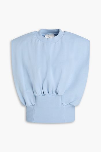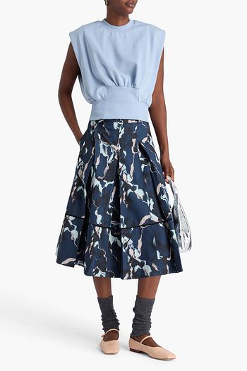 Lattice-trimmed pleated cotton-blend poplin shirt
