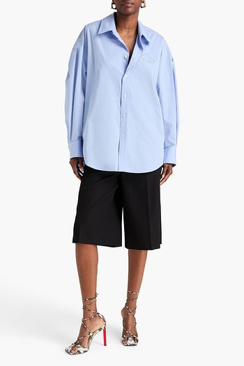 Ruched cotton-poplin mini shirt dress